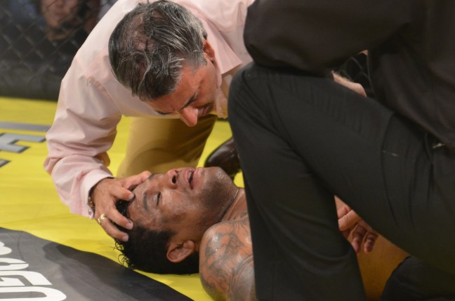 A very tough David Gomez tended to by the doctor!